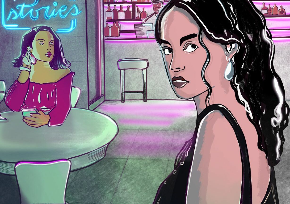 “Can you pass me a lighter?”, he says to the waiter as he sits in a pub waiting for Sameera.
